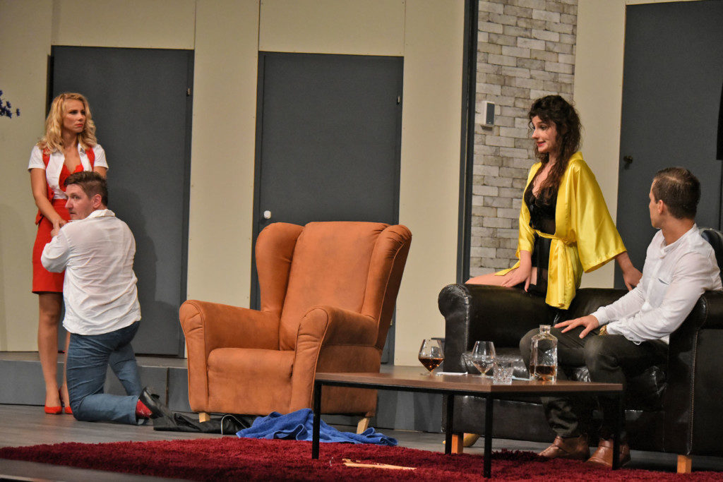 Predstava počiva na nizu zabuna i duhovitih obrata koji nastaju zbog zamršenih muško ženskih odnosa. Bernard je mladi pariški arhitekti, potomak ugledne i moćne obitelji i glavni predstavnik zlatne mladež Pariza koji ima jednu tajnu. Bernarda nema jednu zaručnicu, nema ni dvije nego čak tri zaručnice. Vješto balansira između svojih nevjesta koje doslovno lete kroz njegov život jer sve tri su po zanimanju stjuardese. Njegove zaručenice Britanka Glorija, Talijanka Gabrielle i Njemica Gretchen izmjenjuju se u njegovom stanu po dobro uhodanom rasporedu ali kada se iz vedra neba pojavi njegov poznanik Robert koji ima vlastitu osmrtnicu u džepu, raspored druženja krene se urušavati a Robert i Brnard će pokušati da se tri zaručnice ne susretnu iako će cijeli dan provesti u istom stanu.