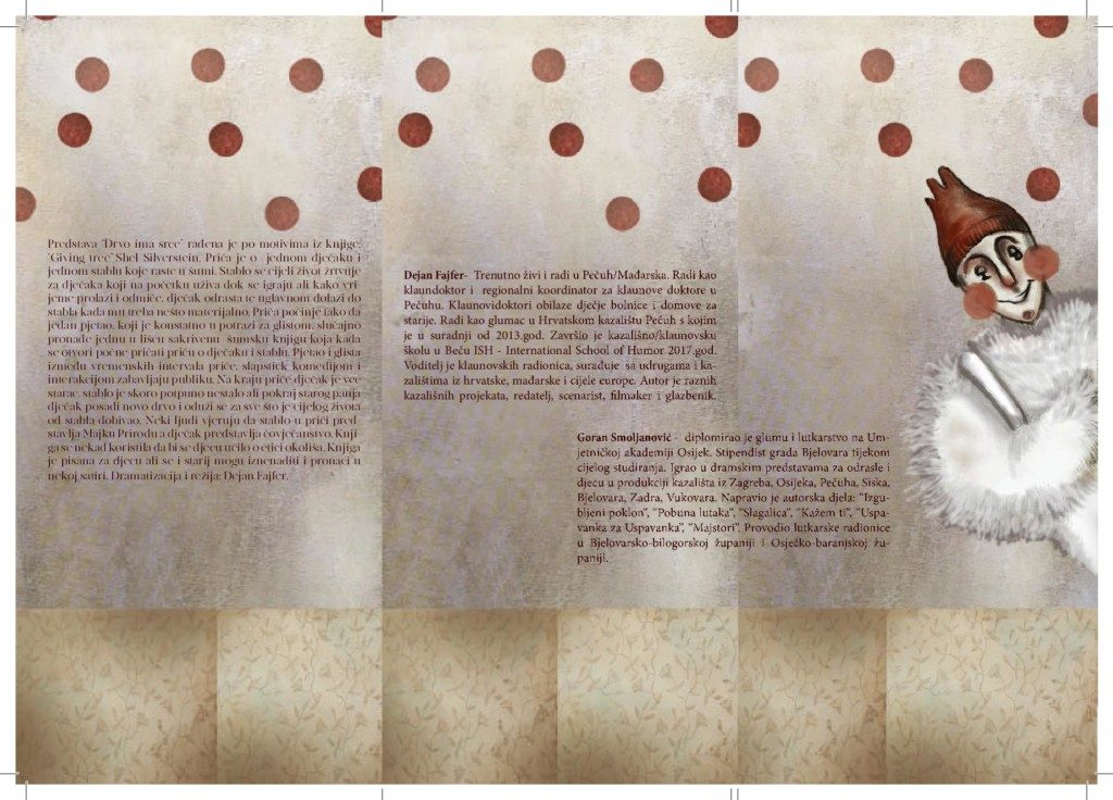 subota 30.3. u 11 sati – predstava za djecu Shel Silverstein „Drvo ima srce“* Hrvatskog kazališta Pečuh