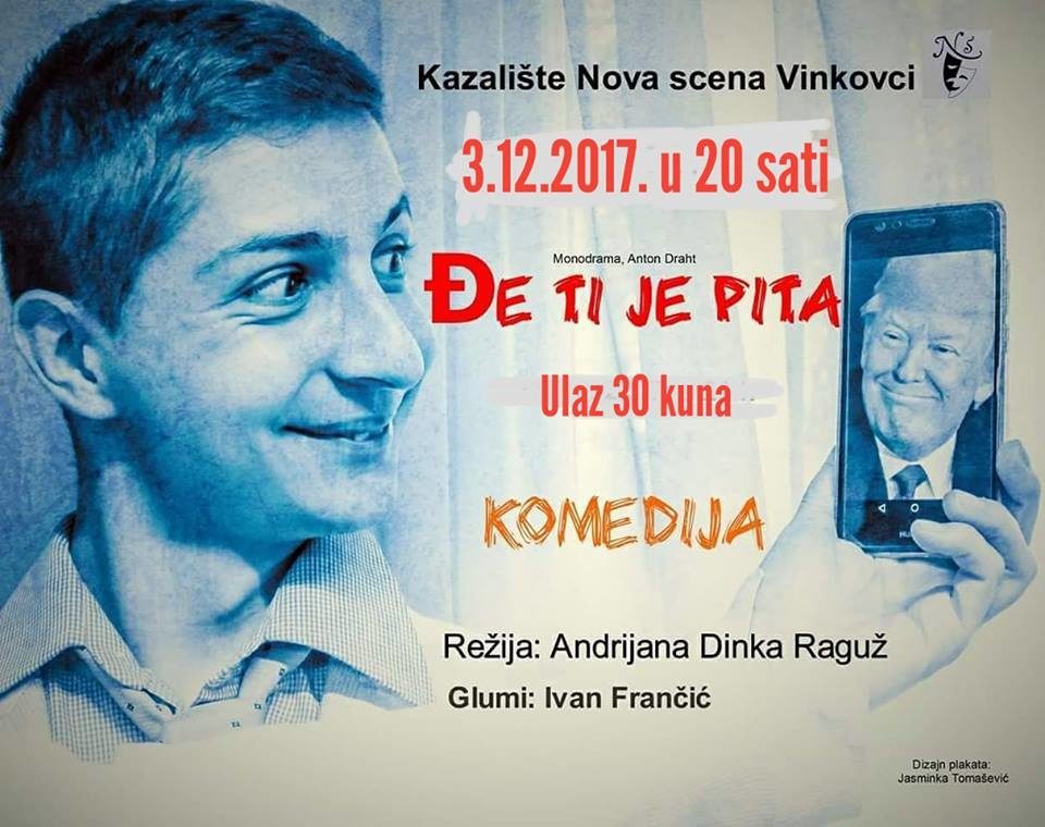 u nedjelju 25.03. u 20 sati komedija A. Drahta: „Đe ti je pita“ Kazališta Nova scena Vinkovci