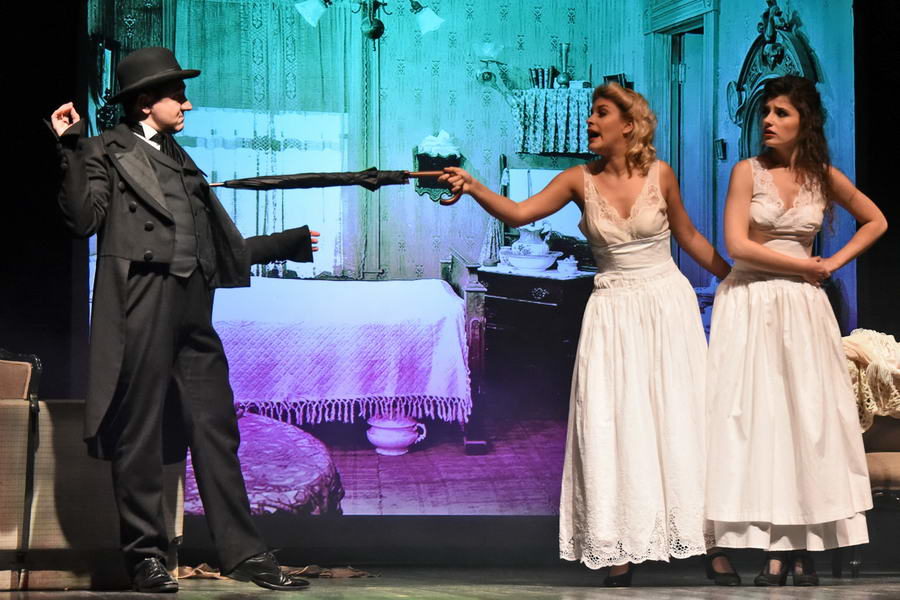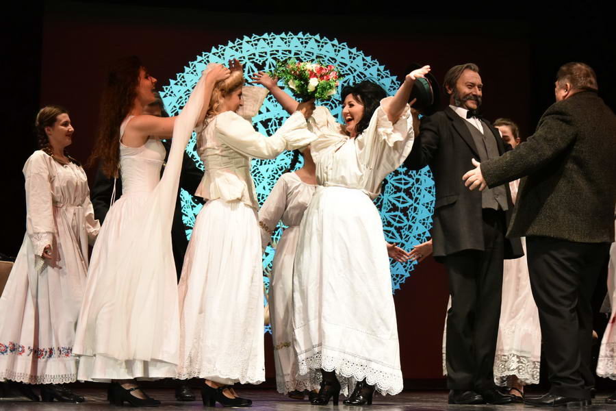 Okosnicu radnje čine ljubavne zgode i nezgode začinjene elementima komedije karaktera i zabune te se tako na samom početku upoznajemo s likom Harmonikaša/Grabancijaša (Vladimir Andrić) koji u prologu najavljuje temu i svoju funkciju – kombinaciju Kupida i Lokija koji će usmjeravati emocije likova, ali im pri tome i otežavati posao obogaćujući i komplicirajući radnju. Radnja se odvija poput vrzinog kola u kojem s jedne strane sudjeluju stariji ženici matori Tutljo (Denis Brižić), kočoperni Čiko (Hrvoje Seršić), stari Rogonja (Goran Smoljanović), s druge strane udavače puštenica Julka (Matea Marušić), namiguša Kata (Katarina Baban) i ofrkuša Ljubica (Selena Andrić). Svima im račune mrsi zgodni, mladi i sposobni Ženskar Jotina (Ivan Ćaćić) dok radnju začinjavaju konobarica (Katarina Krištić), pomoćni harmonikaš (Zorko Bagić), harmonikaš (Andrej Pezić) te varošani i plesači (Folklorni ansambl Lisinski Vinkovci).